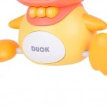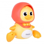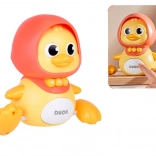 Veľká kačka sa po rovnom povrchu pohybuje dopredu a rytmicky sa hojdá do strán – ideálne na prirodzené povzbudenie k plazeniu a lezaniu.