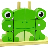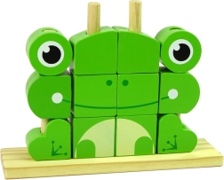 Kreatívna drevená skladačka v tvare žabky je navrhnutá pre deti, aby ich povzbudila k tvoreniu a učila koordinácii. Skladačka obsahuje 12 dielikov, ktoré sa nasadzujú na základňu s kolíkmi, umožňujúc vytvorenie rôznych zvieratiek alebo objektov podľa fantázie.