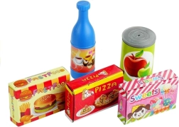 Táto hračka je vhodná pre deti od 3 rokov a obsahuje celkom 50 kusov: ovocie, zeleninu, syry a klasické pokrmy, ako sú pizza, hot-dog alebo čipsy. Deti sa môžu tešiť na hodiny zábavy s týmto realistickým herným setom.