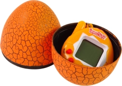 Všimnite si, že Tamagotči sa ukrýva vo veľkom oranžovom vajíčku a vo vnútri je malé elektronické zvieratko, o ktoré sa môžete starať!