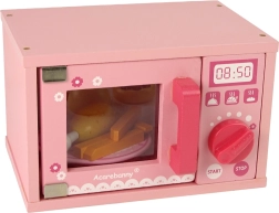 Roztomilá ružová drevená mikrovlnka pre deti je skvelým doplnkom do detskej kuchynky. Má otváracie dvierka na magnet, otočné koliesko s klikacím zvukom a prichádza s bohatou sadou drevených potravín pre realistickú hru na varenie. Vyrobená z kvalitného, bezpečného dreva s odolnými farbami.