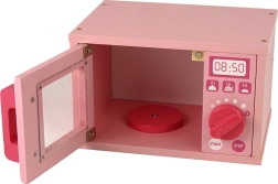 Táto drevená mikrovlnná rúra podporí fantáziu, rolové hry a jemnú motoriku. Deti môžu napodobňovať dospelých, pripravovať „obed“ a učiť sa správne postupy pri varení. Vkusný ružový dizajn sa hodí do každej detskej kuchynky.