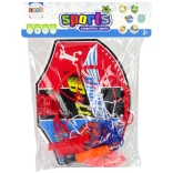 - Kompletné balenie: tabuľa, obruč so sieťou, úchyt, mini lopta a pumpička.