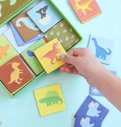 Posilnite pamäť a hrajte sa so svojimi deťmi s touto zábavnou sadou pexesa s dinosaurami. Vhodná hra pre 2 a viac hráčov, kde cieľom je nájsť čo najviac dvojíc: