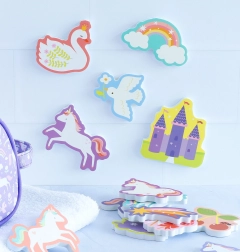 Táto roztomilá sada penových jednorožcov premení kúpeľ na zábavné a kreatívne dobrodružstvo. Dieliky sa po namočení prichytia na hladké povrchy, takže deti môžu skladať vlastné príbehy priamo na obkladoch. Vďaka uzatvárateľnej sieťke s prísavkami máte vždy poriadok a hračky rýchlo uschnú.