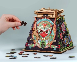 Nechajte sa uniesť tajomstvom aztéckej pyramídy. S viac ako 200 dielmi tento drevený puzzle vyzýva k objavovaniu skrytých stôp a riešeniu logických úloh. Otvorenie mechanických zámkov odhalí skrytý priestor, kam môžete vložiť osobný odkaz alebo inú drobnosť. Vďaka ilustráciám od Steva Simpsona a Joaquína Nava je puzzle nielen výzvou, ale zároveň umeleckým dielom.