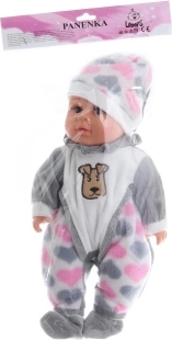 Bábätko s mäkkým telíčkom. Po stlačení telíčka začne bábätko vydávať zvuky (smiech, plač, mama, tata). Bábätko je oblečené do farebného pyžamka, ktoré možno vyzliecť (suchý zips). Rozmery bábätka cca 30 × 15 × 6 cm. Balené v plastovom sáčku. Prevádzka na 3 gombíkové batérie. Vek 3+
