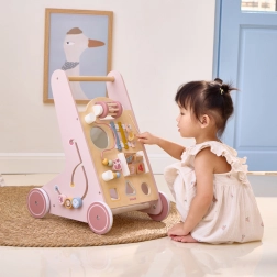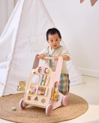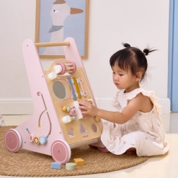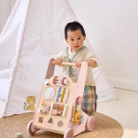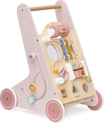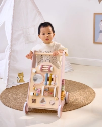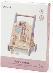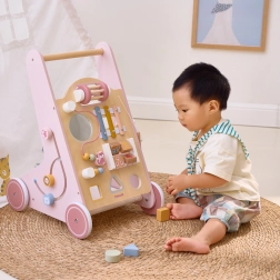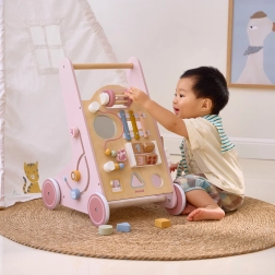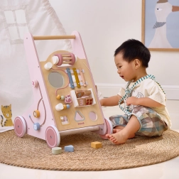 Predstavujeme Drevené chodítko pre batoľatá PolarB v ružovej farbe, navrhnuté pre deti od 18 mesiacov. Kombinuje zábavné aktivity ako sledovanie v zrkadle, otočné kocky, trblietavé korálky, triedenie tvarov a hranie na xylofóne. S týmto chodítkom budú vaše deti bezpečne objavovať svet okolo seba.