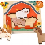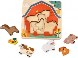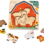 Objavte čaro farmy s vrstveným dreveným puzzle, ktoré je ideálne pre malých objaviteľov od 18 mesiacov. Deti skladajú jednotlivé zvieratká do správnych tvarov, trénujú logické myslenie a precvičujú koordináciu oko–ruka. Vďaka prehľadným obrysom a sýtym farbám sa s puzzle ľahko pracuje a učenie je prirodzene hravé.