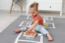 Vkladanie dielikov do zodpovedajúcich výrezov posilňuje prsty, koordináciu oko–ruka aj trpezlivosť. Ideálne pre malé ručičky od 18 mesiacov.