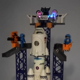 Tento detailný vesmírny set prináša deťom kompletnú kozmickú misiu – od odpočítavania štartu až po pristátie na stanici. Raketa ponúka parádne efekty vrátane zvukov motorov, červeno podsvietenej pary a integrovaného projektora s vesmírnymi motívmi. Raketoplán s otváracou hornou klapkou pojme dve figúrky a stanica s riadiacim centrom a radarom rozšíri hru o nové misie.