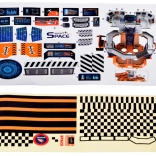 - Raketa s projektorom, raketoplán, diely na stavbu vesmírnej stanice, 4 figúrky astronautov, nástroje, 3 šablóny do projektora (po 8 obrázkoch), pipeta na vodu