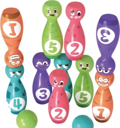 Súprava obsahuje aj dve farebné gule, ktoré umožňujú klasickú hru na kolky. Navyše sú kolky očíslované, čo prináša edukatívny prvok, pomáhajúci dieťaťu pri učení počítania a rozpoznávania čísel. Je to skvelá forma zábavy, ktorá rozveselí každé dieťa!
