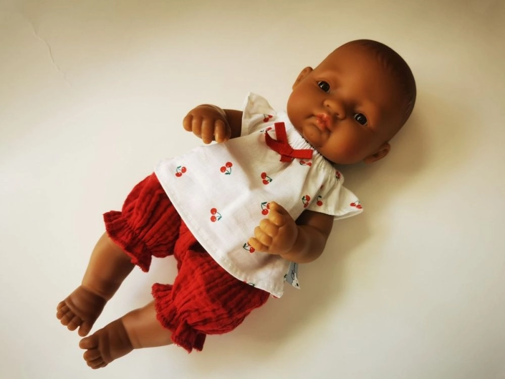 Mušelínová sada pre bábiky 32 cm čerešňa
