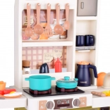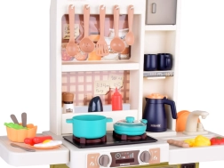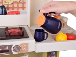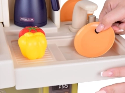 Táto detská kuchynka verne napodobňuje skutočnú kuchyňu a motivuje deti k rolovej hre. Súčasťou je drez s kohútikom a obehom vody, varná doska so svetlami, zvukmi a efektom pary, digestor a hodiny s pohyblivými ručičkami. Otváracie dvierka na chladničke, rúre a umývačke zvyšujú realistickosť a učia deti poriadku aj organizácii.