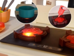Varná doska simuluje varenie: svietiace horáky, bublajúce zvuky a jemná para podnecujú predstavivosť a robia hru ešte realistickejšou.
