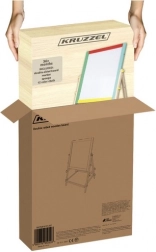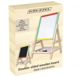 Obojstranná detská tabuľa KRUZZEL spája kreatívnu zábavu a učenie. Jedna strana ponúka kriedovú plochu na kreslenie kriedami, druhá bielu sucho stierateľnú plochu s magnetickou funkciou na písanie popisovačom a prácu s magnetmi. Otočný systém umožňuje rýchlu zmenu plochy pomocou skrutiek s motýlikmi.