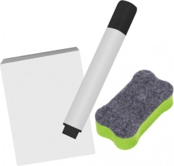 Súčasťou je polica na uloženie pomôcok a štartovacia sada: farebné kriedy, popisovač a hubka na okamžité použitie.