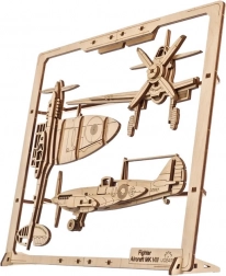 Ugears Stíhacie lietadlo je súčasťou inovatívnej série 2,5D mechanických stavebníc. Jedná sa o historický model slávneho lietadla Spitfire zo 40. rokov, ktorý sa stane krásnym doplnkom každého interiéru, umiestneným na stene alebo na stole vďaka vlastnému rámiku.