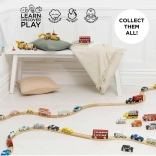 - Sada 7 drevených autíčiek ideálnych pre rozvoj predstavivosti a sociálnych zručností.