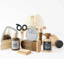 Le Toy Van je ideálna pre všetkých malých stylistov. Kadernícka taška so sťahovacou šnúrkou je vyrobená z prírodnej bavlny a je vybavená 11 kusmi kvalitného vybavenia z hladkého a zaobleného dreva s certifikáciou FSC®️. Každý diel je ručne maľovaný netoxickými farbami a je odolný proti odlupovaniu.