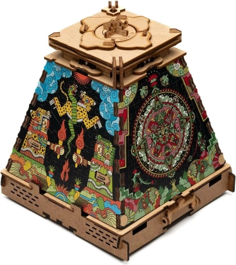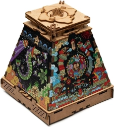 Premeníte drevenú pyramídu na pútavú dizajnovú dominantu. Táto druhá vrstva s motívom Aztécka ríša elegantne prekryje pôvodné motívy a dodá vášmu modelu výrazný, farebný vzhľad inšpirovaný starovekou Mezoamerikou. Rozšírenie je určené výhradne pre PYRAMÍDU SLNKA a má iba dekoratívny účel – neovplyvňuje mechanizmus ani riešenie hlavolamu.