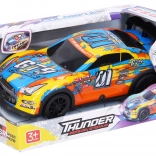 Štýlové závodné auto je ideálne pre malých aj väčších pretekárov. Vďaka zotrvačníku stačí auto rozbehnúť, pustiť a sledovať, ako sviští vpred. Po stlačení prednej kapoty sa aktivujú svetelné a zvukové efekty, ktoré umocnia zážitok z hry.