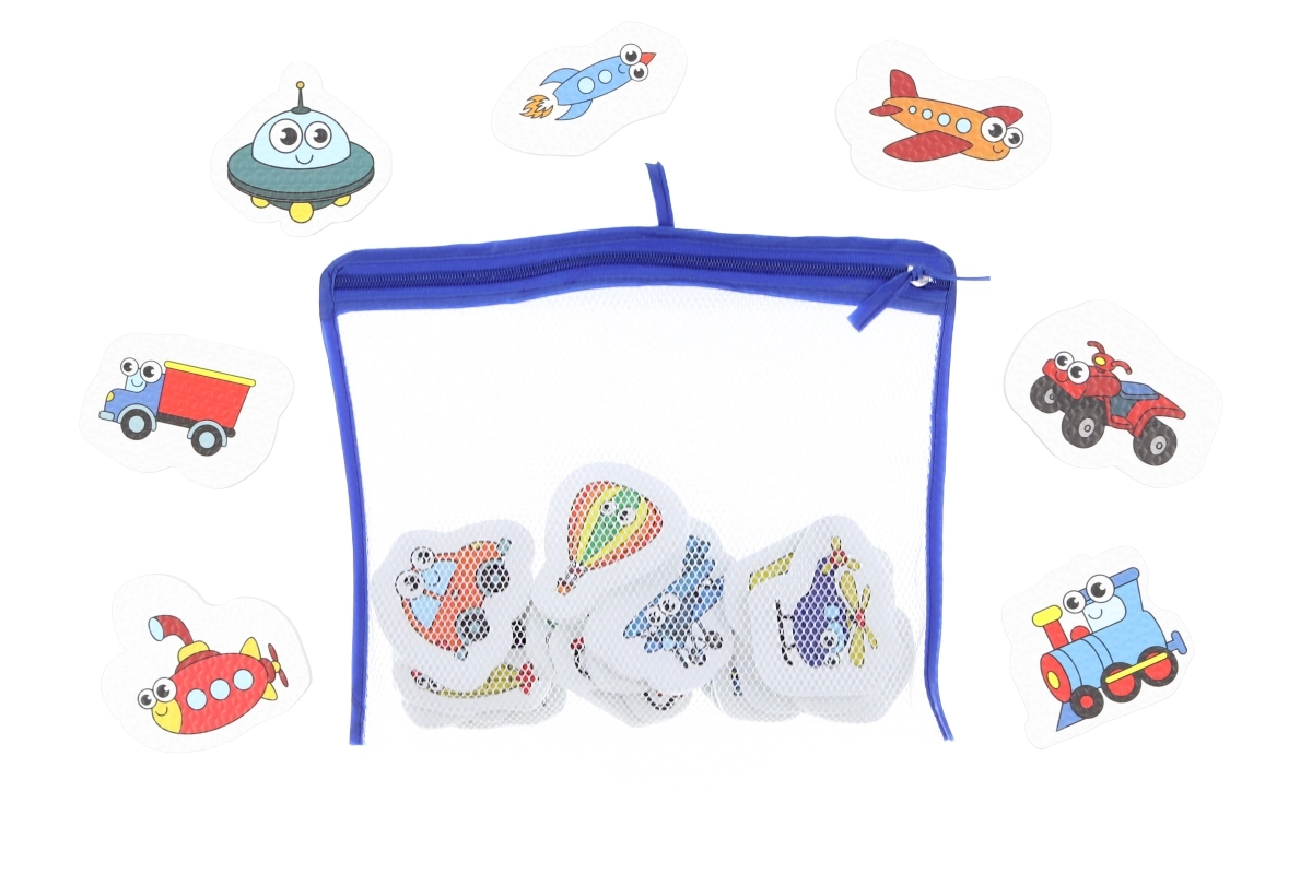 Spríjemnite kúpanie hravými vodolepkami s motívmi dopravných prostriedkov. Dieliky z odolného PE materiálu ľahko priľnú k navlhčenému hladkému povrchu, jednoducho sa odstraňujú a rozvíjajú jemnú motoriku a predstavivosť. Balenie obsahuje 16 dielikov v praktickej sieťke so zipsom.