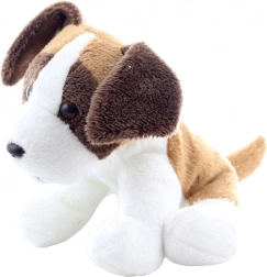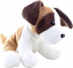Plyšový pes je vyrobený z jemného, príjemného materiálu, ktorý je vhodný na objímanie a poskytuje pocit pohodlia.