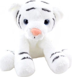 Plyšový tiger je vyrobený z mäkkého a kvalitného materiálu, ktorý je príjemný na dotyk a vhodný pre deti.