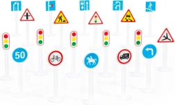• Realistické prevedenie – Sadu tvoria plastové značky, ktoré verne napodobňujú skutočné dopravné značky.