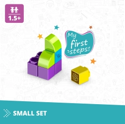 Vďaka kompaktným rozmerom 16 × 16 × 13,5 cm je sada skvelá na doma, na návštevy aj do auta. Farebné kombinácie a rozmanité tvary podporujú raný rozvoj detí a motivujú k objavovaniu.