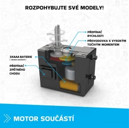- Motor s prevodovkou – realistický pohyb, voľba smeru a rýchlosti.