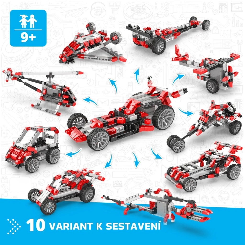 - 10 modelov v jednom – pretekárske autá, buginy, vrtuľník a ďalšie stroje.
