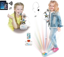 S touto Bluetooth karaoke sadou si užijete veľa zábavy. Obsahuje karaoke modul, stojan s mikrofónom a hlavový mikrofón, ktorý zaistí stabilný a pohodlný spev aj pri pohybe. Ovládací panel je vybavený stojanom na mobil alebo MP3 prehrávač, takže môžete ľahko sledovať texty alebo videá.