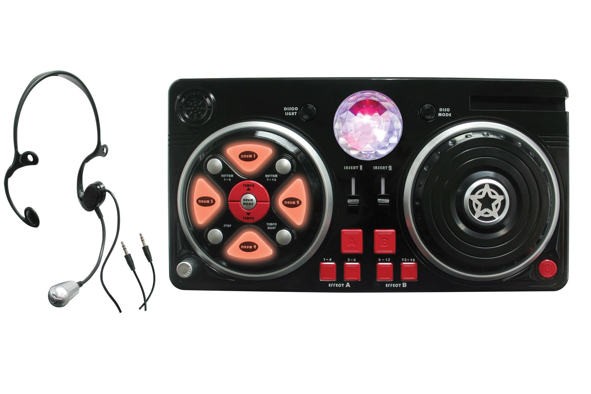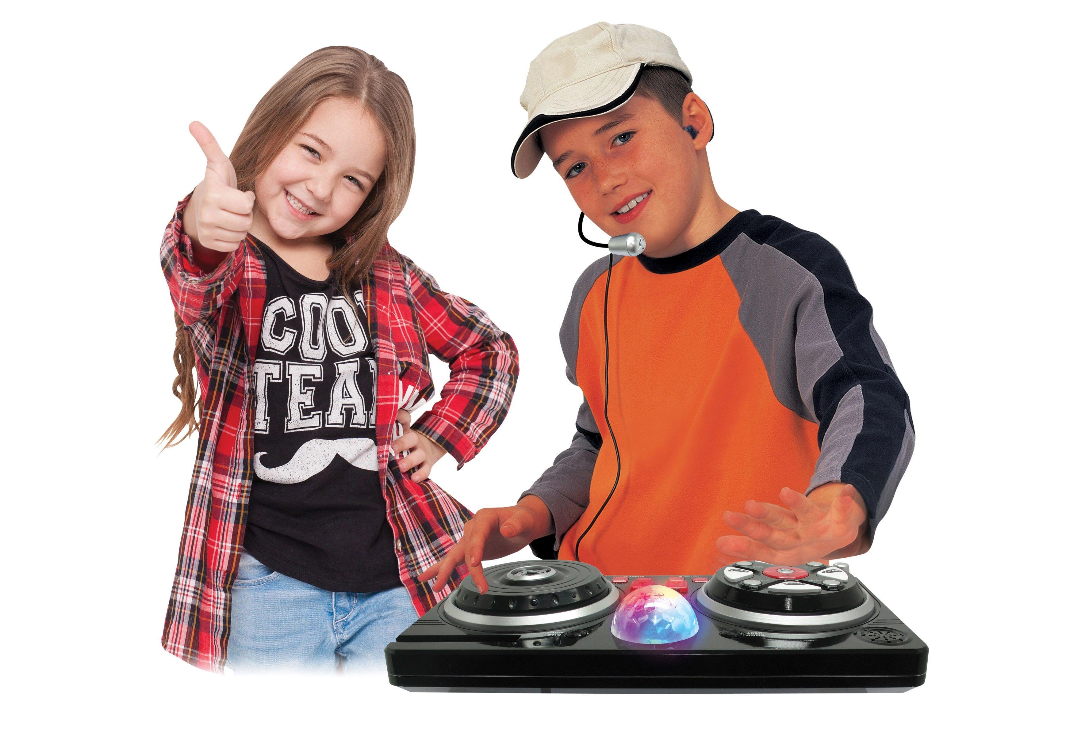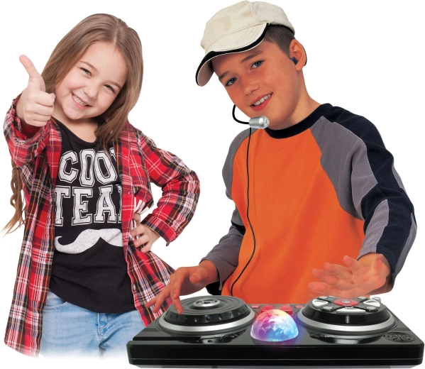 Premeňte detskú izbu na malé nahrávacie štúdio. Tento mixážny pult s pohodlným hlavovým mikrofónom a svietiacou disco guľou ponúka bohatú paletu funkcií na kreatívne hranie aj prvé hudobné pokusy. Vďaka pripojeniu mobilu či mp3 prehrávača možno jednoducho pustiť obľúbené skladby a mixovať ich s beatmi a efektmi.