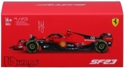 Objavte detailne spracovaný model FERRARI F1 SF-23 z roku 2023 od značky BBURAGO. Kovové telo s plastovými doplnkami prináša realistické proporcie, autentické tímové sfarbenie Scuderia Ferrari a štartové číslo 55 pilota Carlos Sainz. Ideálny do vitríny, na pracovný stôl aj ako darček pre nadšených fanúšikov kráľovnej motoršportu.
