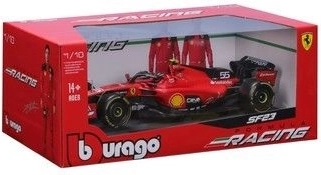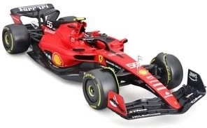 Oficiálne licencovaný kovový model Bburago v mierke 1:18 verne zobrazuje monopost Scuderia Ferrari SF-23 (2023) so štartovým číslom 55. Nechýba figúrka Carlosa Sainza, autentické tímové sfarbenie a precízne detaily – ideálne pre zberateľov aj fanúšikov Formuly 1.