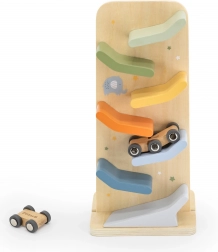 Farebná rampová dráha s autíčkom motivuje k opakovanej hre, posilňuje pozorovanie, koordináciu a pochopenie príčiny a následku.