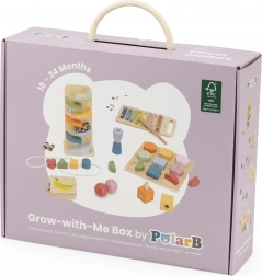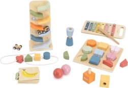 Táto starostlivo zostavená sada VIGA pre vek 18–24 mesiacov spája obľúbené drevené hračky do harmonického celku. Nájdete v nej xylofón na prvé hudobné experimenty, zábavnú autíčkovú dráhu, tvarové puzzle, závitové diely, navliekacie tvary a drevenú knižočku s obrázkami ovocia. Každý prvok je navrhnutý tak, aby podporoval prirodzený rozvoj dieťaťa hrou.