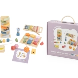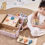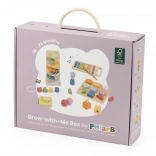 Bezpečné drevené prevedenie s hladkými hranami a pastelové farby lákajú k skúmaniu, trénujú trpezlivosť, sústredenie a logické myslenie. Sada je skvelá ako darček aj ako štart do sveta zmysluplných Montessori‑inšpirovaných aktivít.