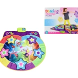 Tanečný hudobný koberec je skvelou voľbou na aktívne hranie doma. Vďaka jednoduchému ovládaniu si deti môžu vyberať z prednastavených melódií, upraviť rýchlosť a hlasitnosť podľa svojej chuti. Veľká herná plocha poskytuje dostatok miesta na skákanie a tancovanie.