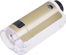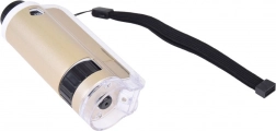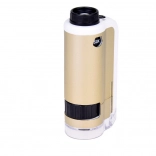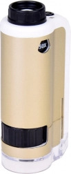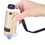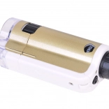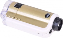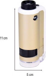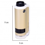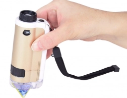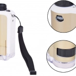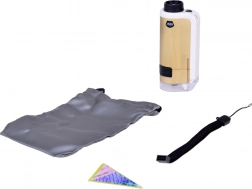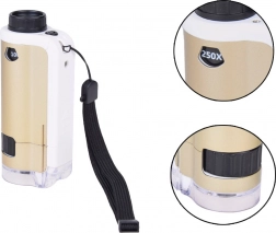 Zariadenie je jednoduché na použitie: priložte priehľadnú základňu k povrchu skúmaného objektu, otočným kolieskom doostríte a podľa potreby zvoľte zväčšenie 100× alebo 250×. Odolné spracovanie z kovu a plastu, napájanie 1× AAA 1,5 V a príslušenstvo v balení z neho robia skvelý náučný darček.