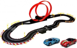 Predĺžte si zábavu s červeným a modrým autíčkom v mierke 1:43. Ovládače majú funkcie na zvýšenie rýchlosti a prehrávanie zvukových efektov zrýchlenia. Zostavte dráhu o rozmeroch 155 cm x 60 cm x 37 cm a zažite hodiny zábavy.