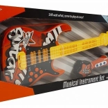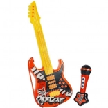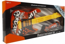 Objavte zábavnú elektrickú gitaru spolu s mikrofónom, dokonale navrhnuté pre malých hudobných nadšencov. Táto gitara je vyrobená z kvalitného plastu a prichádza v žiarivo červeno-žltom prevedení. Gitaru zdobia štýlové svetelné efekty a interaktívne tlačidlá, ktoré umožňujú jednoduché ovládanie rôznych piesní a zvukov.