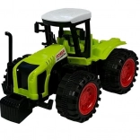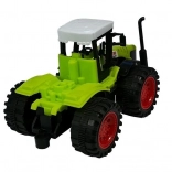 Robustný plastový traktor s veľkými kolesami a kontrastnou strechou vyzerá ako skutočný stroj a ľahko ťahá všetky prívesy.