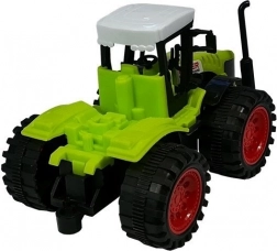 Zelený traktor s bielou strechou a veľkými kolesami zvládne každý „poľný“ úkol. Perfektný základ pre pripájanie ďalších nadstavieb.