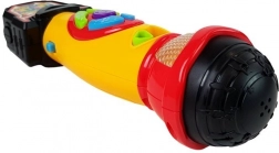 Stlačením zeleného tlačidla dieťa ľahko nahrá až 20 sekúnd a svoju nahrávku si ihneď prehrá. Modré tlačidlo s notami spustí melódie, centrálne „mikrofón“ tlačidlo pridá hudobný sprievod a potlesk pre autentickú atmosféru pódia. Hračka prirodzene rozvíja predstavivosť, koncentráciu a koordináciu.