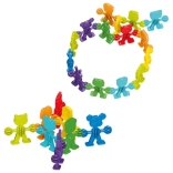 Figúrky možno navzájom prepájať, takže deti môžu tvoriť kruhy, reťaze a jednoduché konštrukcie – zábavná cesta k rozvoju motoriky a kreativity.