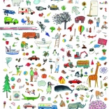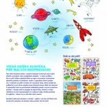 Obsah je navrhnutý tak, aby spolu s dieťaťom rástol: tí najmenší si precvičia farby a pojmy, staršie deti zvládnu prvé čítanie a písanie tlačených písmen. Súčasťou sú aj nápady na hry na tréning krátkodobej pamäti a rozprávanie príbehov podľa obrázkov – fantázii sa medze nekladú. Bonus predstavujú anglické preklady slovíčok, takže učenie môže pokračovať aj v cudzom jazyku. Ide o slovenskú verziu knihy.